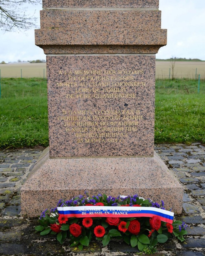 «Это один из трех обелисков, установленных в Шампани в память о российских солдатах, освободивших Европу от тирании Наполеона и победоносно вошедших в Париж 210 лет назад[…] При этом Россия тогда сражалась именно с осмелившимся напасть на нее завоевателем, а не с народом Франции», – подчеркнул Посол.