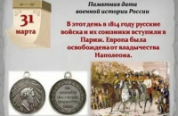 31 марта 1814 года в полдень в Париж торжественно вступили отборные части союзных войск во главе с императором Александром I и командующими союзными войсками.