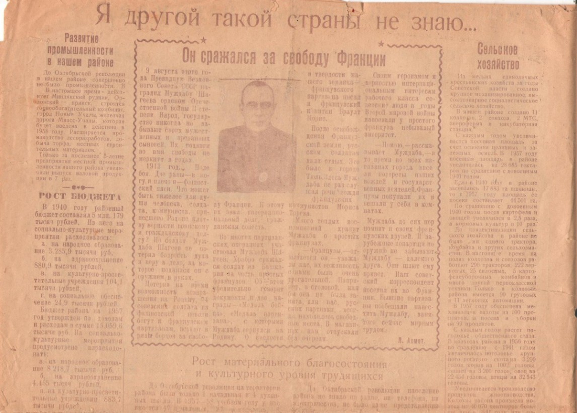 Умер кавалер двух орденов Отечественной войны, французский партизан, Герой Сопротивления Муждаба Шагиев в 1982 году.