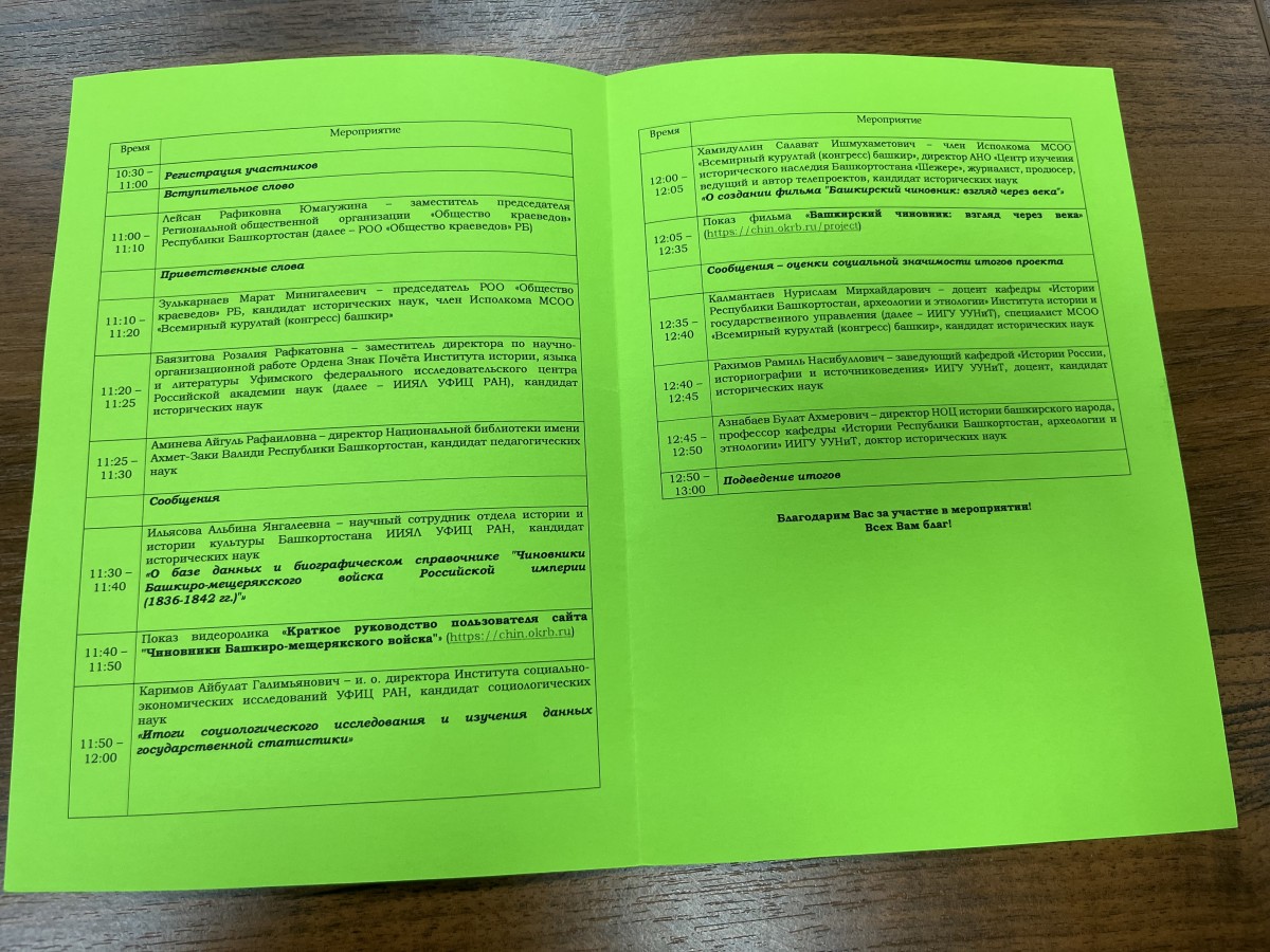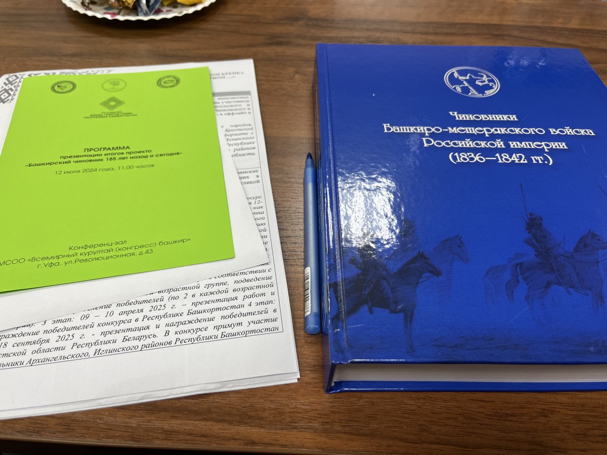 12 июля 2024 года в г.Уфе прошла презентация итогов проекта «Башкирский чиновник 185 лет назад и сегодня». Проект был реализован Региональной общественной организацией «Общество краеведов» Республики Башкортостан совместно с Институтом истории, языка и литературы УФИЦ РАН и Национальной библиотекой имени Ахмет-Заки Валиди Республики Башкортостан при поддержке Фонда грантов Главы РБ.