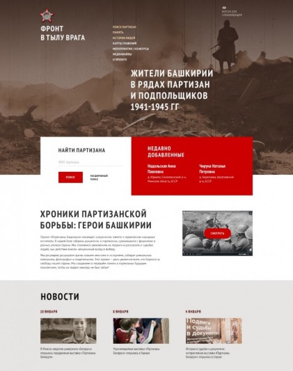В рамках историко-культурного проекта «Жители Башкирии в рядах партизан и подпольщиков в годы Великой Отечественной войны 1941—1945 гг.» идет работа по созданию базы данных «Фронт в тылу врага»