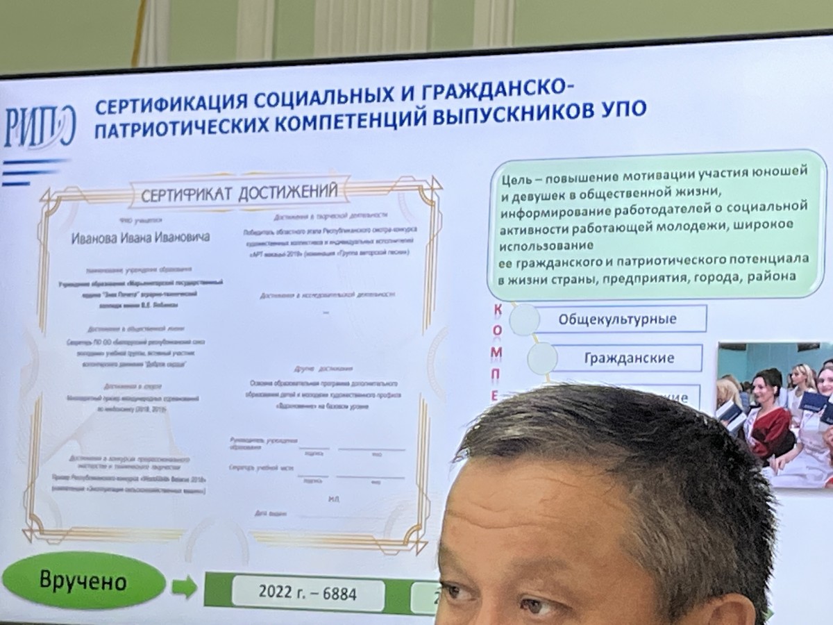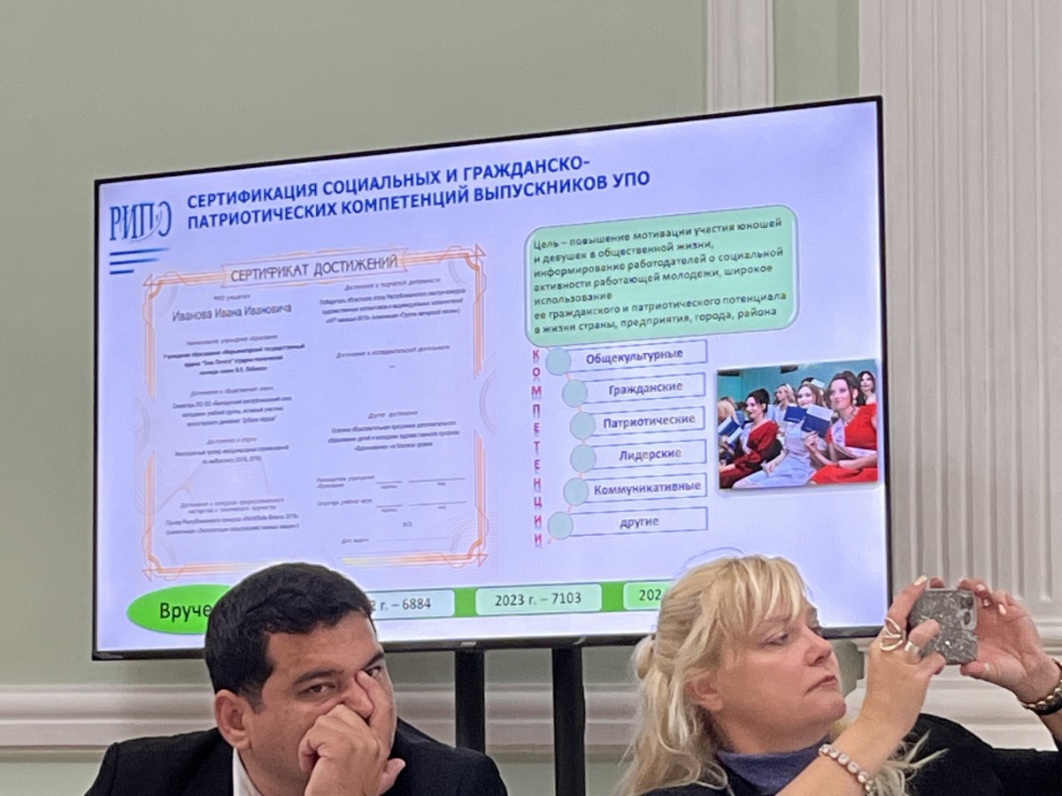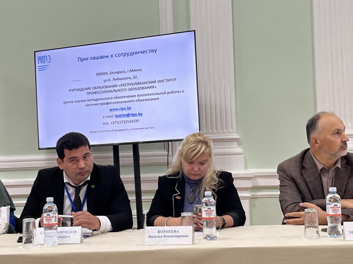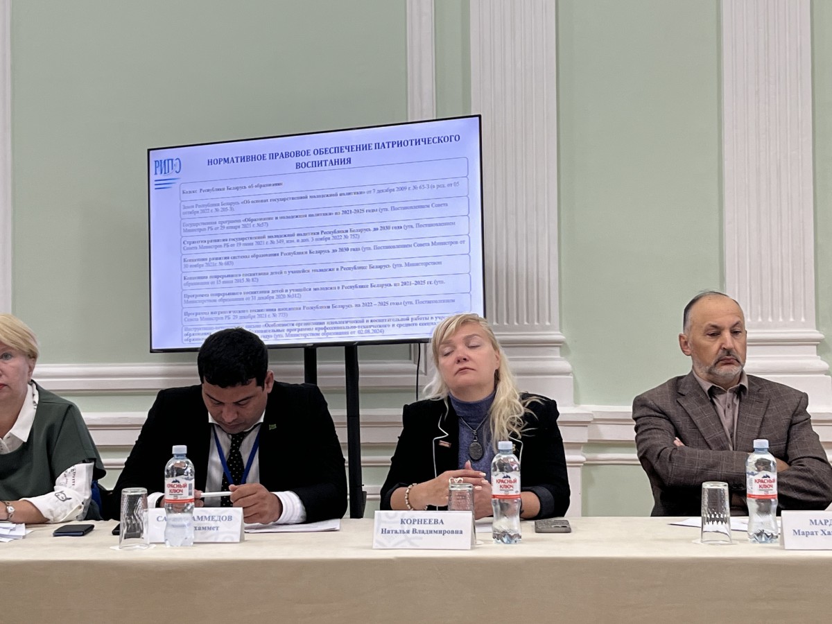Светлана Бутрим, начальник Центра научно-методического обеспечения воспитательной работы в системе профессионального образования «Республиканский институт профессионального образования» Республики Беларусь, поделилась опытом реализации проектов и программ, направленных на патриотическое воспитание молодёжи. Она отметила, что в Беларуси большое внимание уделяется формированию у молодых людей любви к Родине, уважения к исторической памяти и историко-культурному наследию. Институтом разработана программа патриотического воспитания, в которой активно применяются современные формы работы с молодежью: динамические карты, квесты, медиаплатформы, компьютерные игры, видеоблоги, встречи с деятелями культуры и ветеранами Великой Отечественной войны, которые помогают молодым людям лучше понять ценности современного мира. Также существует система сертификации социальных и гражданско-патриотических компетенций выпускников учреждений профессионального образования, которая отражает их активность в различных направлениях, включая мероприятия патриотической направленности.